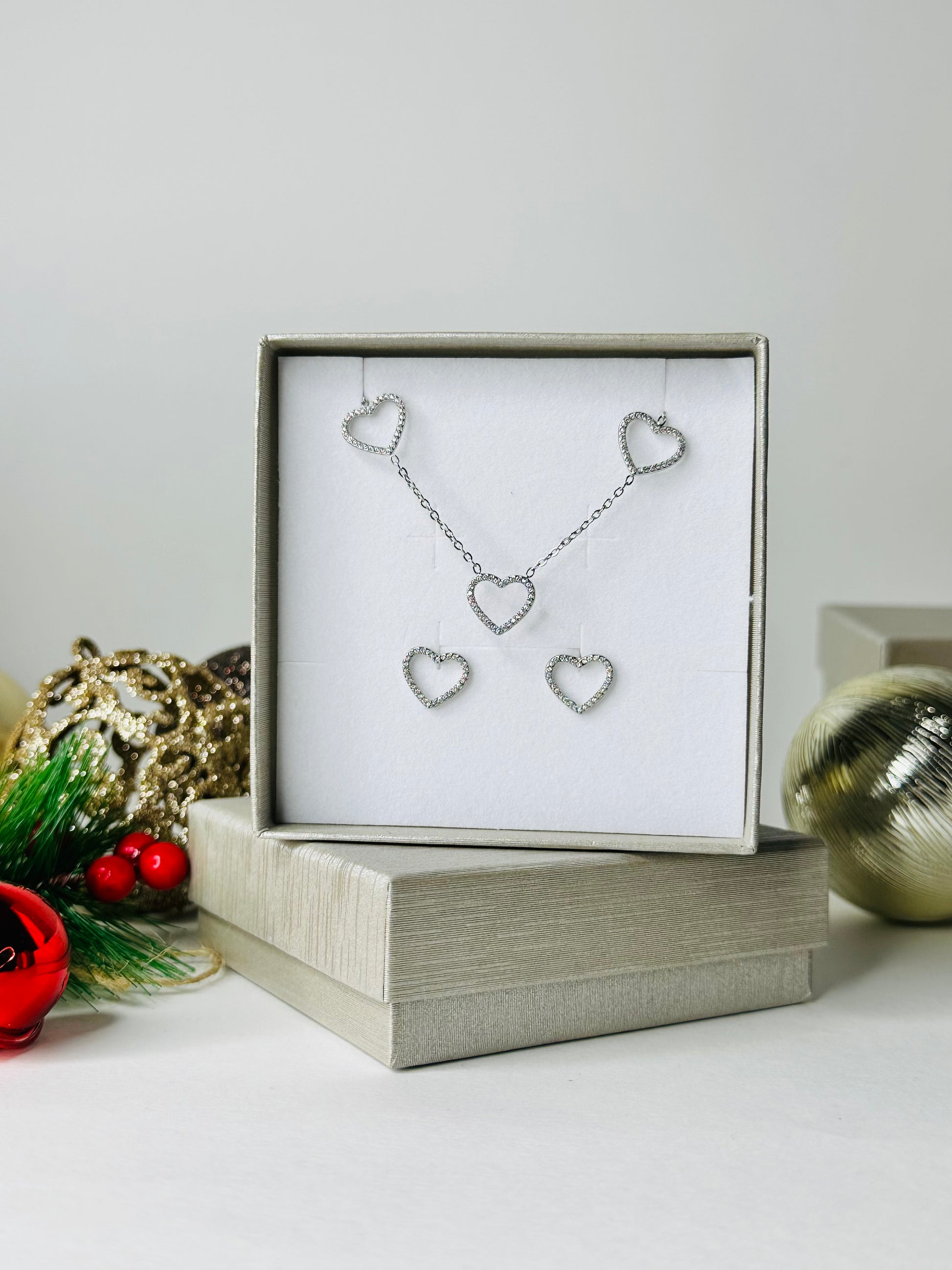 Box natalizia, composta da collana e orecchini in abbinato con cuore traforato e zirconi prodotto in acciaio inossidabile senza nichel senza piombo