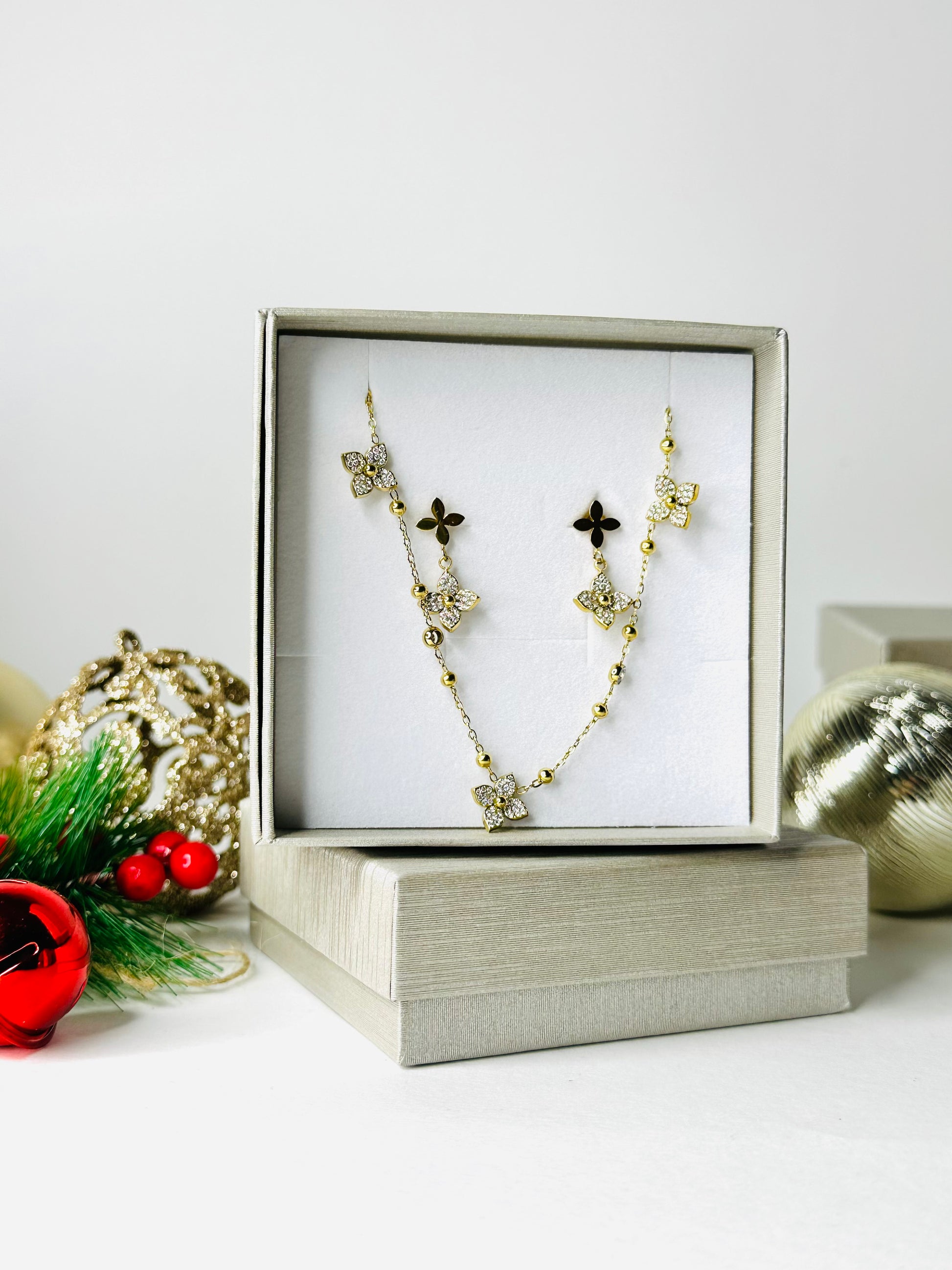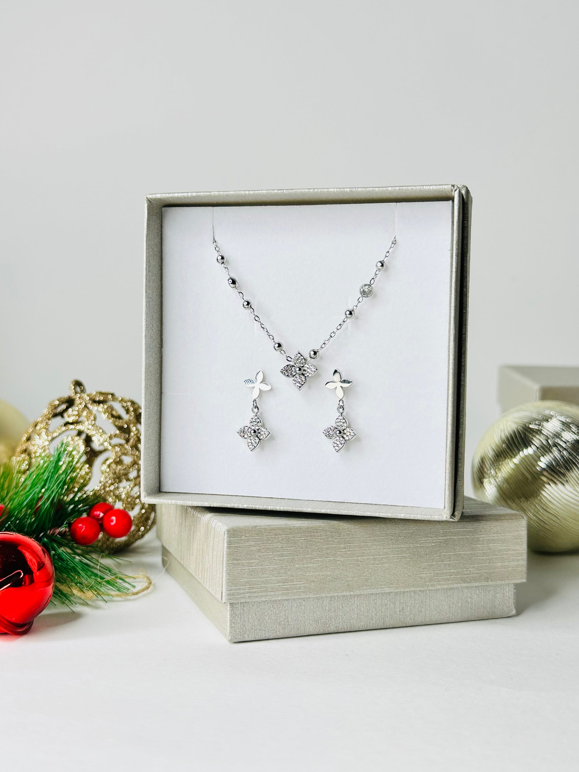 Box natalizia, composta da Collana con dettagli e orecchini abbinato a pendente