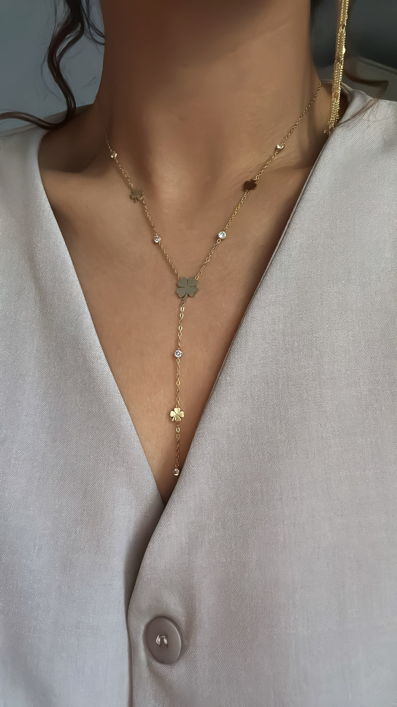 Collana ad Y con dettagli a quadrifoglio in acciaio inox