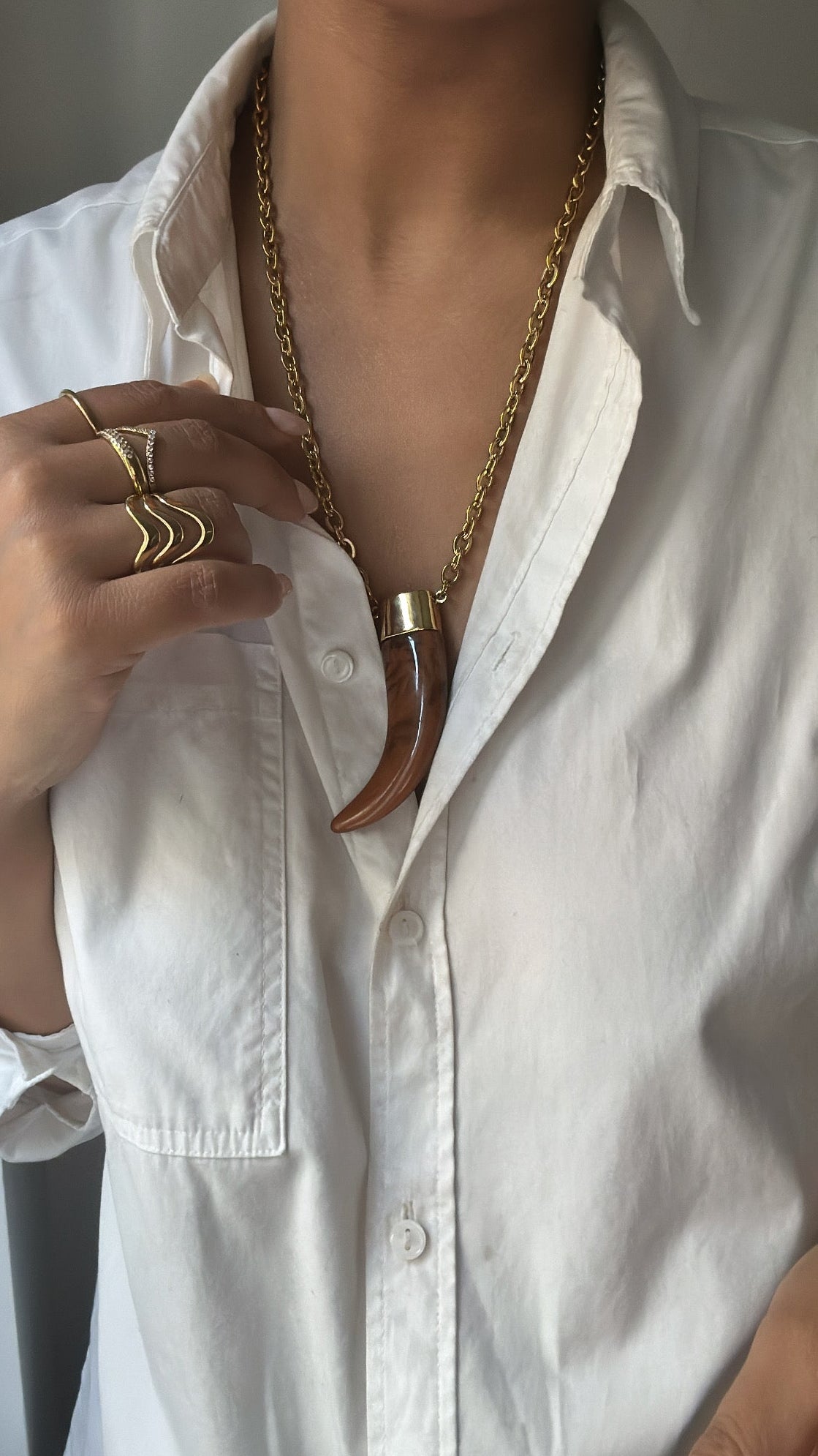 Collana con corno bianco con venature marroni