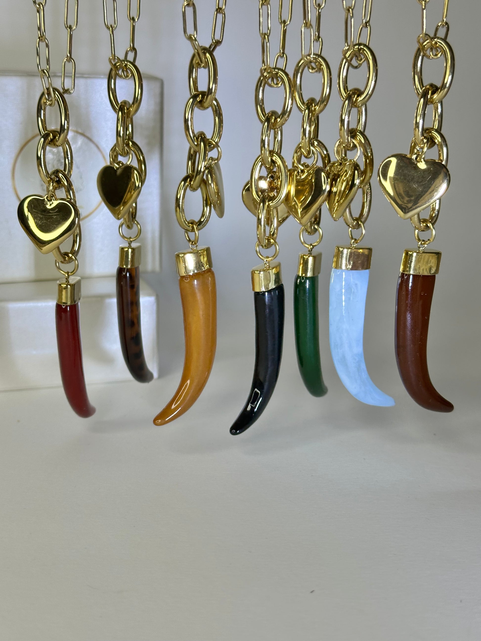 Collane in acciaio inossidabile con corno in resina e Charms a forma di cuore