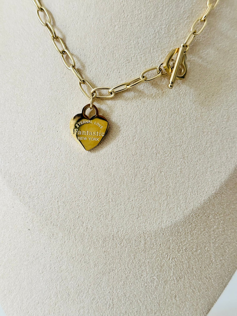 Collana Eternal con ciondolo Eternal love e apertura laterale con chiusura T a forma di cuore