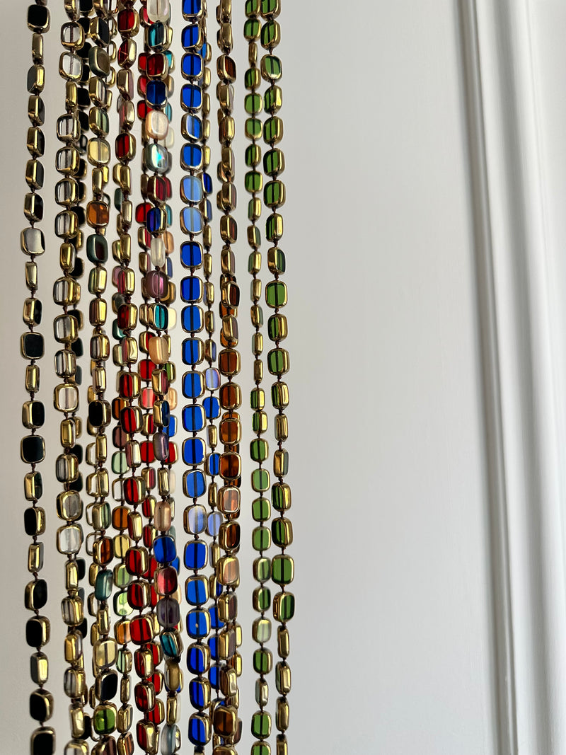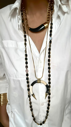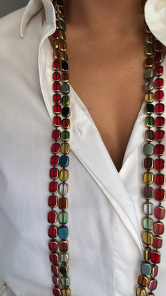 Collanna con cristalli rettangolari neri smaltati attorno in nero lunga 90cm girca