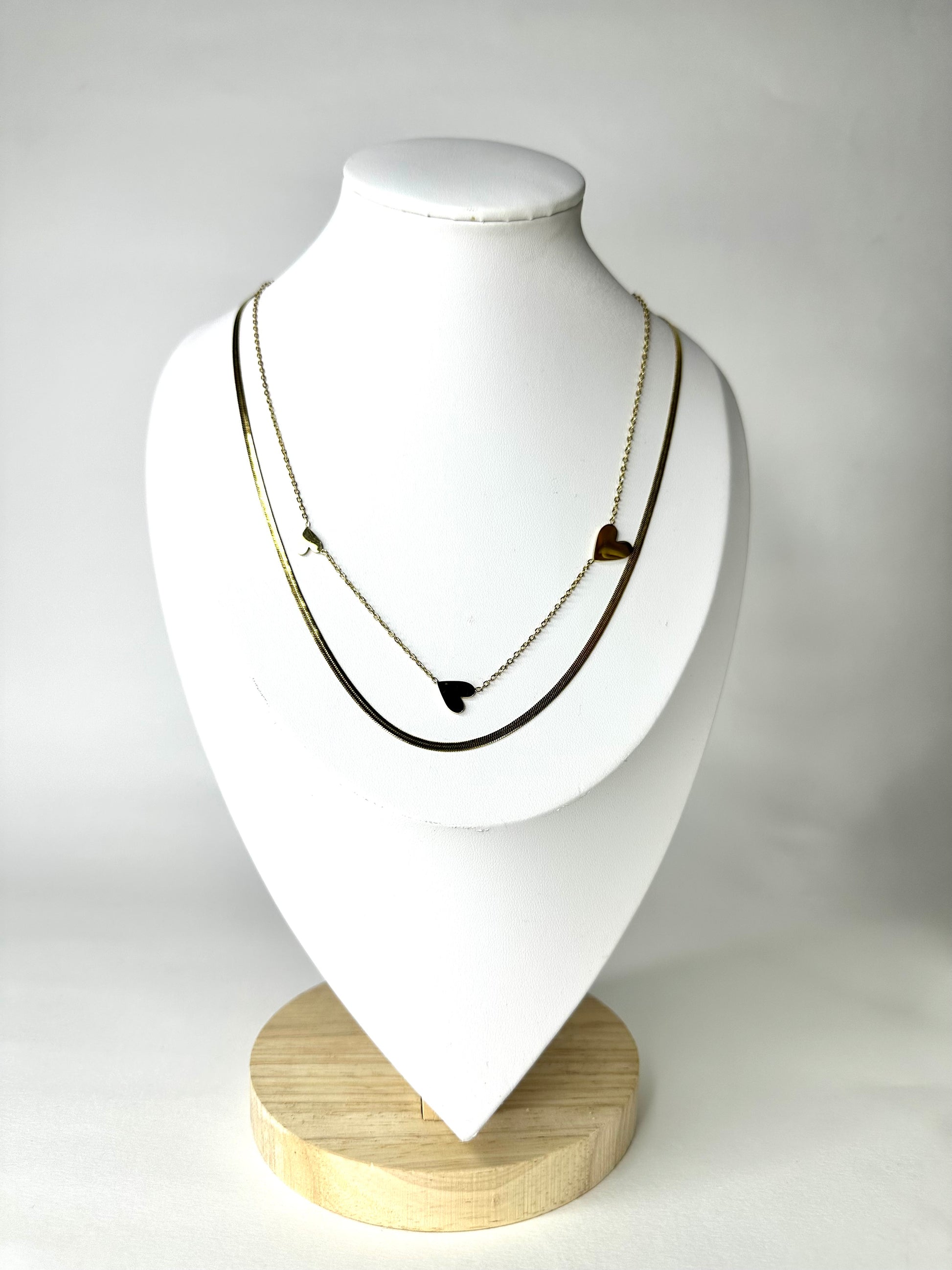 Collanna doppio giro con Base snake e filo con triplo cuore