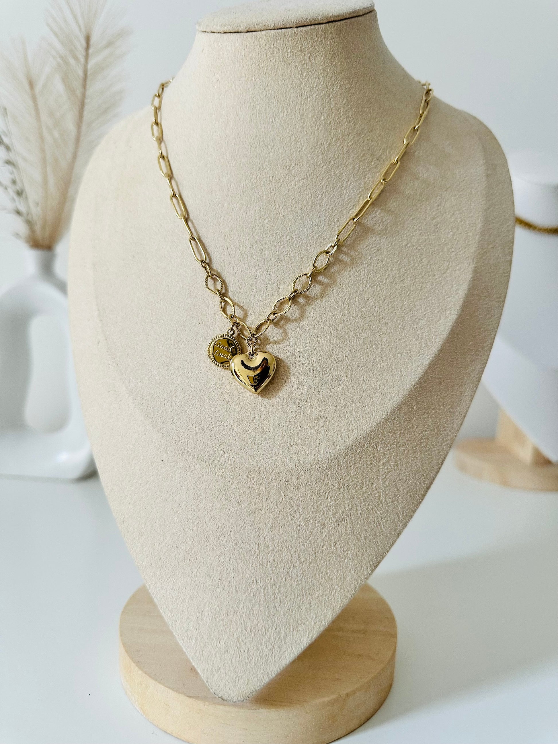 Collana con doppio ciondolo, cuore bombato e Charms Good Luck