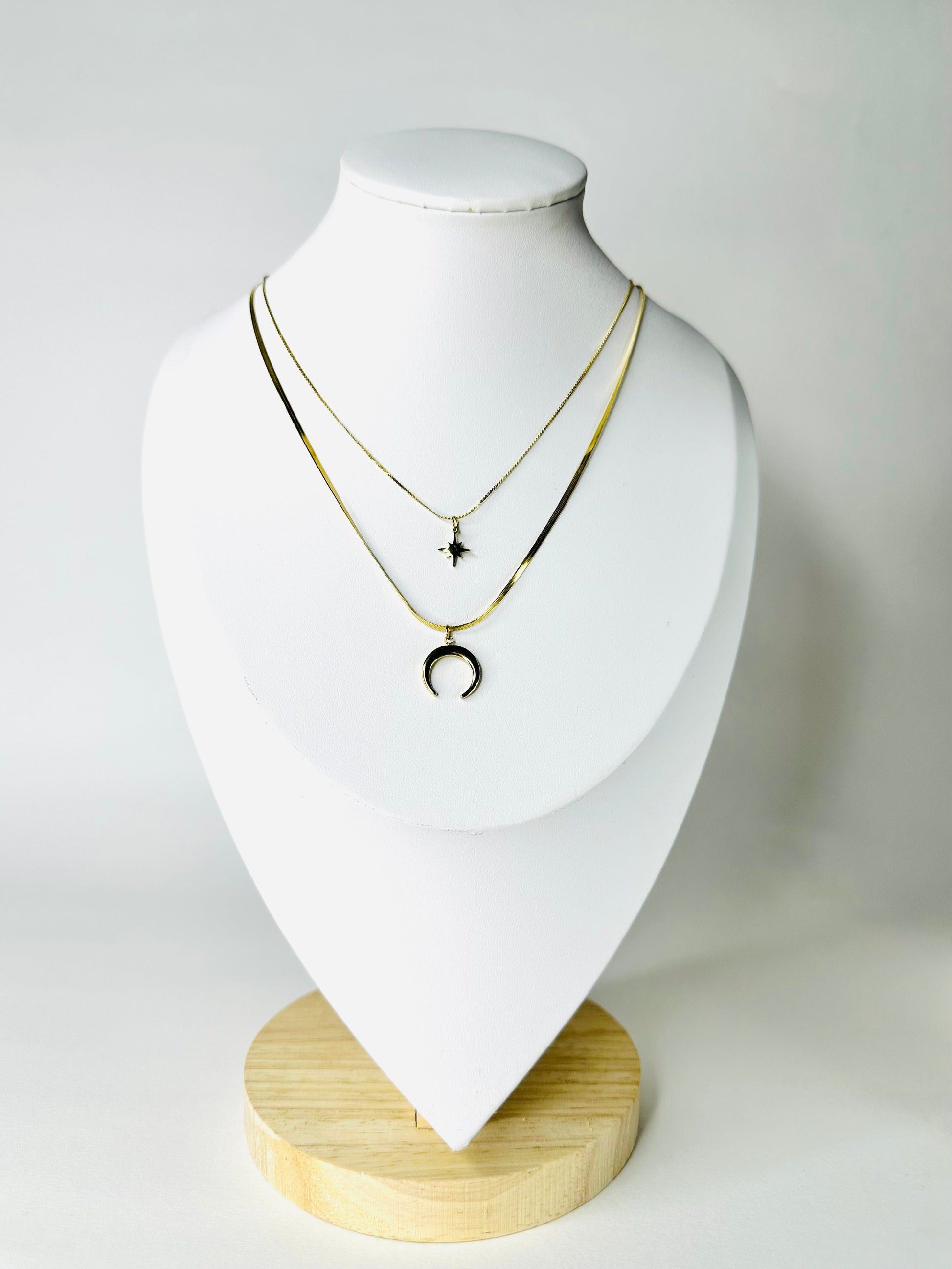 Collanna do più giro con ciondolo stella e luna disponibile in variante oro e argento in acciaio inossidabile senza nichel senza piombo con prolunga di 4 cm dietro
