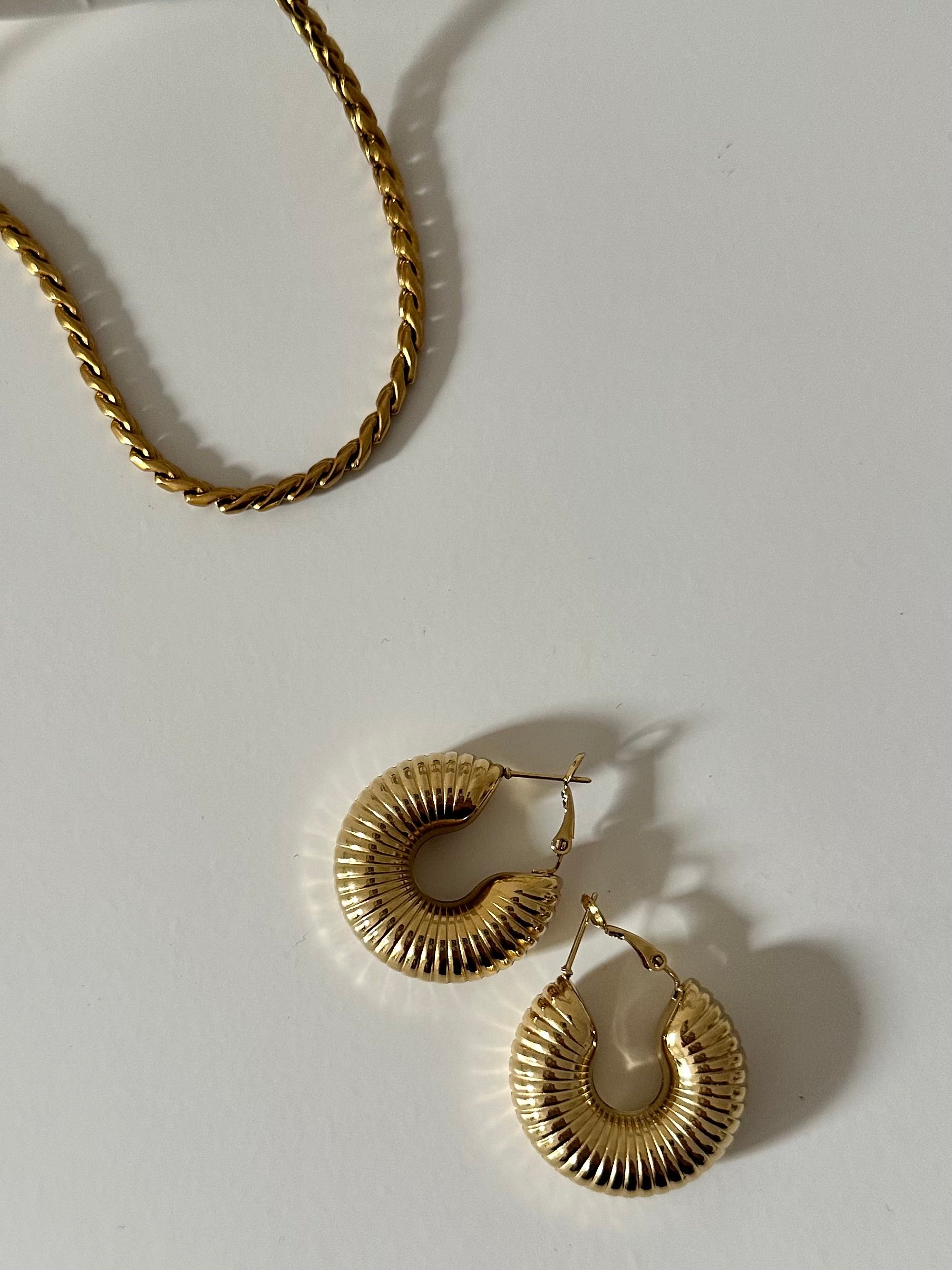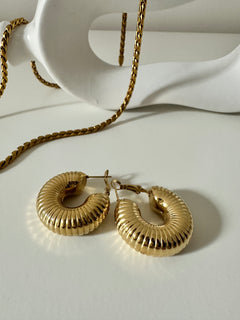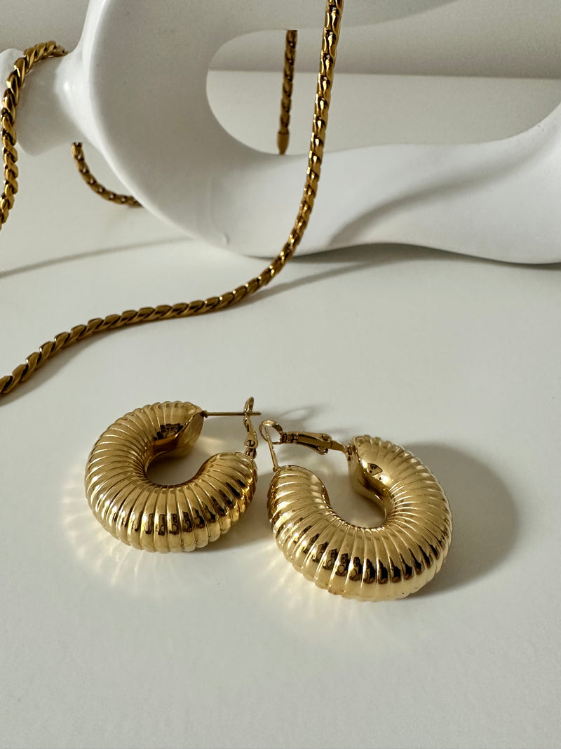 Orecchino tondo, bombato rigato in acciaio inossidabile