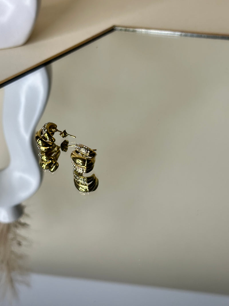 Orecchino a triplo mezzo cerchio con dettagli con cristalli disponibile in variante oro e argento senza nichel senza piombo leggerissimo con chiusura Farfalla